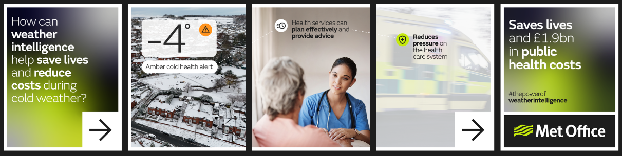 We work with the UK Health Security Agency to provide cold health alerts. This system supports health and social care professionals, along with others responsible for mitigating the health impacts of cold weather, in effective planning and preparedness. By alleviating pressure on the healthcare system, it helps save lives and £1.9 billion in public health costs.