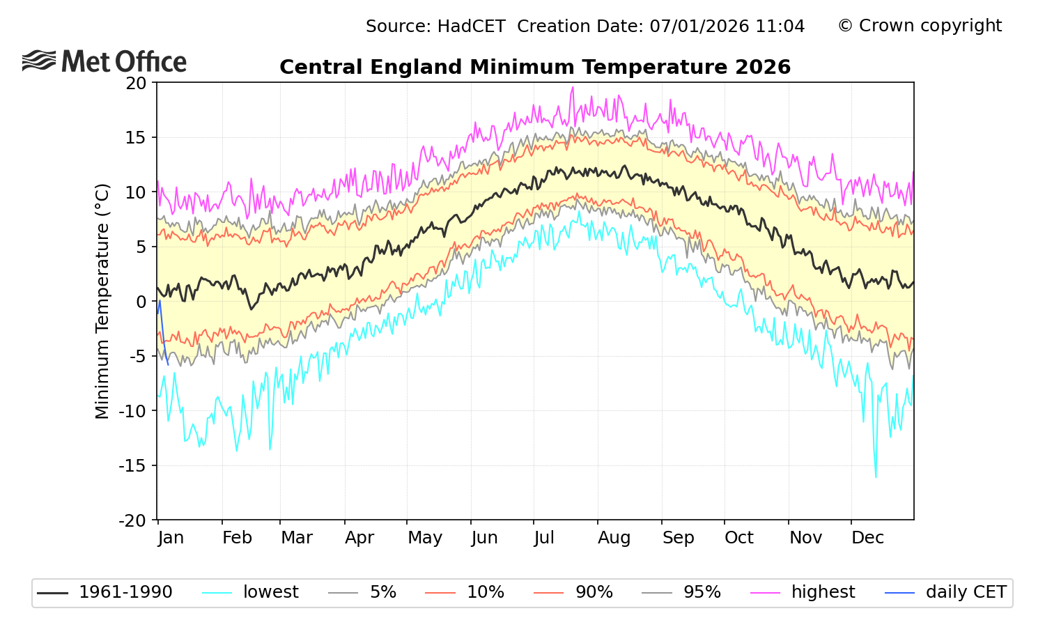 The highest annual min CET ever recorded was